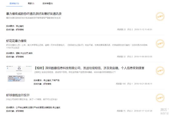 更有意思的是,深圳數趣信息科技有限公司在企查查的信息頁面上,顯示產品信息為“蝦球借錢”。在聚投訴上,關于蝦球借錢暴力催收的投訴也不在少數。