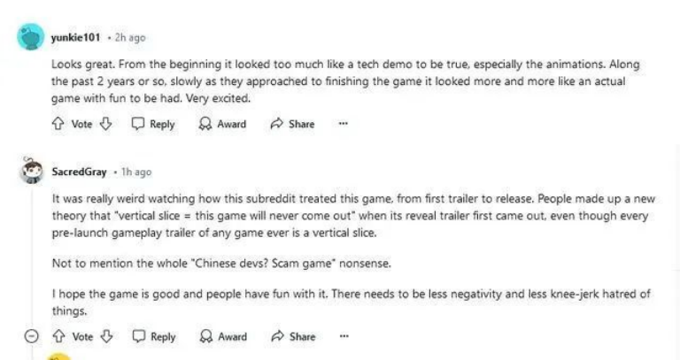 不僅中國玩家寄予“國產之光”厚望,該游戲在海外也扭轉了很多人的看法,從此前質疑中國開發者能否做出高品質游戲,到如今游戲素質的認可和期待,是很多外國網友的心路歷程。