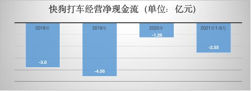用“流血上市”來形容快狗打車,一點都不為過。 此外,從宏觀角度來看,疫情影響尚未消除,過去兩年上市的滿幫、順豐同城等貨運平臺股價亦表現(xiàn)不佳。而且貨運賽道馬太效應強大,按2020年交易額數(shù)據(jù),快狗打車雖占據(jù)第二的市場份額(5.5%),但與排名第一的貨拉拉(54.7%)相去甚遠。 那么,為什么快狗打車為何會選擇在此時上市呢? 燒錢燒不起了 快狗打車是有錢的。 從其披露的融資來看,在IPO之前,快狗打車總共完成了三輪融資: 2018年8月6日完成A輪融資,從淘寶中國融資1.22億美元; 2018年8月至2021年6月間完成13次B輪融資,投資者包括58到家(3400萬美元)、Vision Carnation(2502萬美元)、財富華新(5560萬元人民幣)、瑞銀(860萬美元)以及阿里巴巴的間接非全資附屬公司菜鳥(3000萬美元)等; 2021年6月進行C輪融資,58到家、翹創(chuàng)和Idea Chance各投資1500萬美元, AHKEF、交銀國際資產(chǎn)管理、CMF分別投資23.56萬美元、2000萬美元和300萬美元。 三輪融資為快狗打車帶來了海量現(xiàn)金。但若查看快狗打車的財務報表,其經(jīng)營活動所用凈現(xiàn)金連年為負。2018年、2019年、2020年、2021年1-9月,快狗打車的經(jīng)營活動所用凈現(xiàn)金分別為-3.80億元、-4.56億元、-1.26億元及-2.55億元。