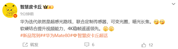 【TechWeb】6月11日,華為在年度新品發布會上正式推出了Pura 80系列手機。作為華為旗艦產品線的最新成員,這一系列以“先鋒影像美學”為核心,重新定義了移動影像的可能性,一經亮相便受到了外界的廣泛關注。而這段時間以來,華為另一當家系列——Mate系列的迭代新旗艦也迎來曝光,現在有最新消息,近日有數碼博主進一步曬出了該系列在影像上的更多細節。