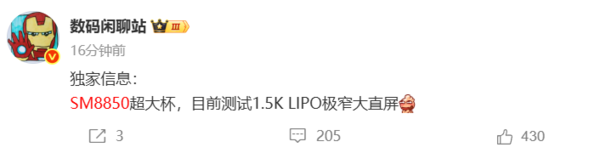 據知名數碼博主@數碼閑聊站 最新發布的信息顯示,一款SM8850(第二代驍龍8 Elite處理器)超大杯機型正在測試1.5K LIPO極窄大直屏。結合此前相關爆料,該機很可能就是已經得到不少曝光的全新OPPO Find X9 Ultra。據悉,該機仍然將是迭代旗艦中唯一一款擁有雙潛望長焦的機型,將配備2億像素主攝、2億像素潛望長焦、5000萬潛望長焦和超廣角,組成全新的哈蘇四攝系統,該機不僅擁有雙潛望,還是業界罕見的雙2億像素方案。相比傳統的單潛望鏡方案,雙潛望最明顯優勢是覆蓋的焦段更多,不同焦段可以營造出不同的氛圍感,實現更高的創作自由度,這是OPPO獨有的優勢之一。