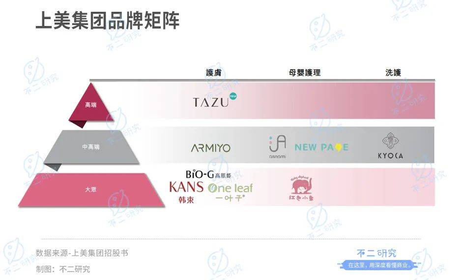 上美集團是一家多品牌化妝品公司,專注于護膚品及母嬰護理產品的開發、制造及銷售,旗下擁有韓束、紅色小象、一葉子等品牌。