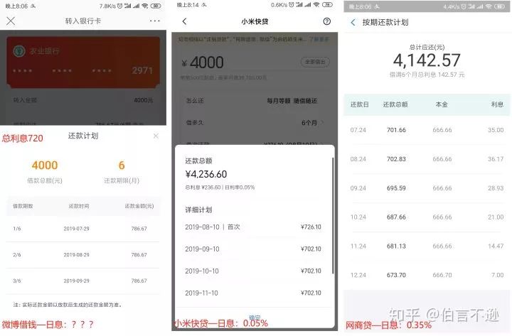 而且,差評君到支付寶的借唄去借錢,日息萬分之五,比微博還高一點,結(jié)果每個月還的錢反而比微博還要少 27 塊。。