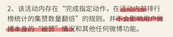事實上,前面這事很快就被曝出是一次烏龍。這個點贊數(shù)翻倍的獎勵不適用于整個微博,僅僅只適用于「 微博借錢 」發(fā)起的 “ 雙十一網(wǎng)購勢力榜 ” 這一活動內(nèi)。