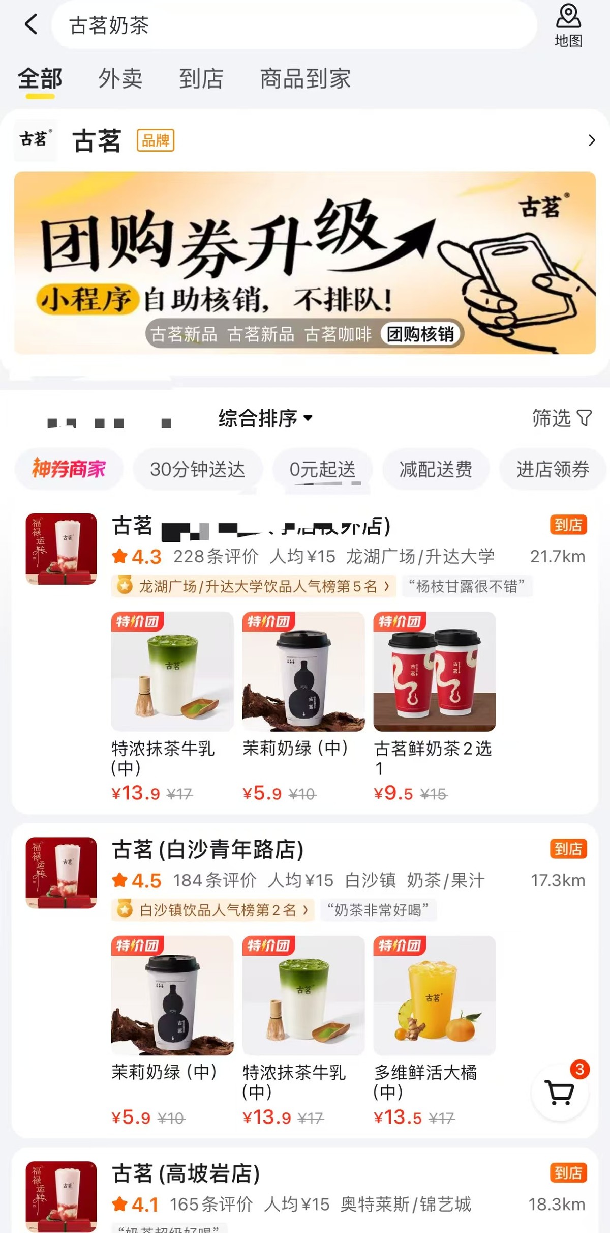 就拿筆者所處的鄭州為例,美團顯示,最近的古茗店也在距市區(qū)17公里開外的臨近縣城,所以很多人可能就沒有聽說過古茗品牌。那么對我、對我身邊的大多數(shù)消費者而言,古茗跟我們老家十八線鄉(xiāng)鎮(zhèn)上開的自營奶茶品牌有什么區(qū)別?可能還不如蜜雪冰城有名。