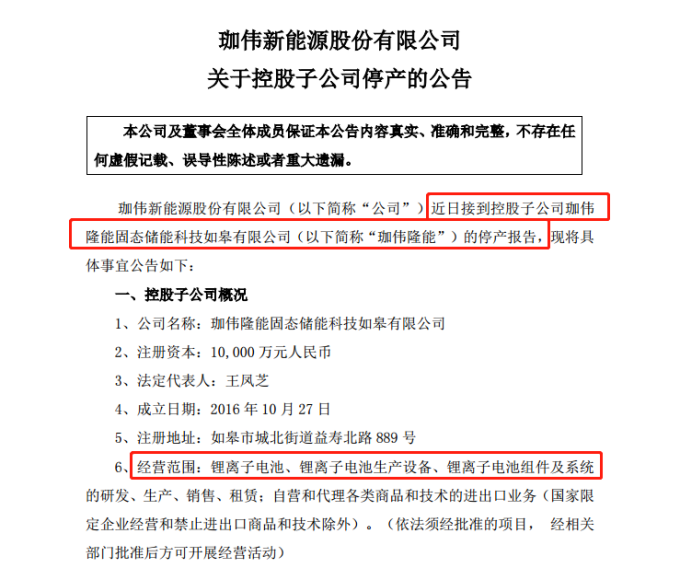 珈偉新能進入鋰電池領域可以追溯至2017年,彼時珈偉新能與如皋經濟開發區管委會簽署投資協議,擬投資不低于6.6億元用于鋰電池項目。但相關產能在后續年報中并有明確披露,大概率未能實現量產。