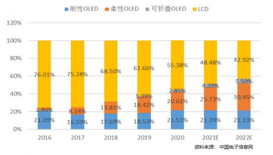 根據WitsWiew、LEDinside和中國電子信息網的統計,2020年OLED和miniLED市場規模分別達到了60億美元和310億美元,其中我國智能手機面板出貨量OLED占44.62%,預計今年年底占比將過半。