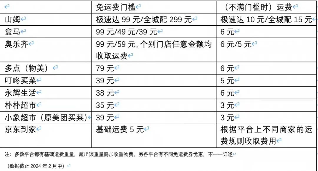 目前包括山姆極速達、奧樂齊、樸樸等零售企業也在過調整免運費門檻的市場化手段優化運力資源。