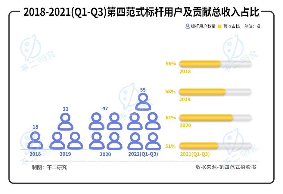 同期,第四范式分別服務18名、32名、47名及55名標桿用戶;標桿用戶收入分別貢獻總收入的56%、58%、61%及51%。近四年內,標桿用戶的營收占比過半。
