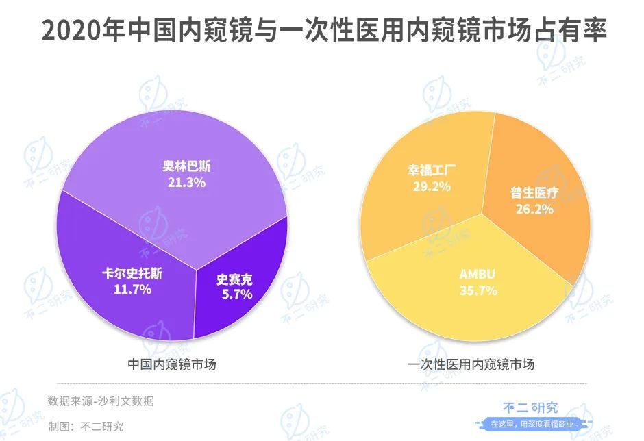 而在新興的一次性醫用內窺鏡市場,中國的市場依然被巨頭割據,據沙利文數據顯示,中國一次性醫用內窺鏡市場前三大市場從業者分別為Ambu、幸福工廠和普生醫療,市占率分別為35.7%、29.2%、26.2%。