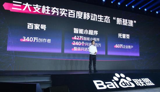 而基于“人格化”的驅動,百度也在快速收獲更多的“用戶”,百度官方數據顯示,“百家號已經吸引了340萬內容創作者持續為我們的生態提供內容和服務;智能小程序已經引入了42萬個小程序,月活超過5億,月活過百萬的智能小程序超過240個;而托管頁方面,已經有60多萬企業客戶使用了托管頁。”