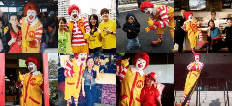 麥當勞叔叔的形象,是充滿趣味與滑稽感的——傳統馬戲小丑打扮,黃色連衫褲,紅白條的襯衣和短襪,大紅鞋,黃手套,一頭紅發,也因此拉近了與消費者的距離。