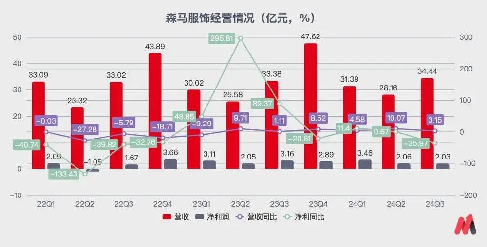 由于Q3財報中森馬服飾未給出收入細分數據,需結合2023年年報和2024年半年報的數據來看。