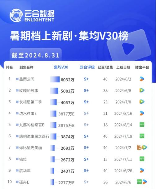 無論是暑期檔開頭的《墨雨云間》、結(jié)尾的《邊水往事》,還是更早上線的《新生》,都屬于非超強IP、非頂流演員加持的劇集。以《墨雨云間》為例,開播之前,僅有10幾位經(jīng)驗老道的廣告主鑒別“真金”。