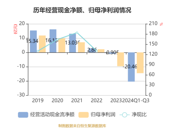 如果說營收還能差強人意,用友網絡在凈利方面的下滑更是前所未有。前三季度,用友網絡的歸母凈利潤虧損14.55億元,上年同期虧損10.3億元,虧損同比擴大41.24%;扣非凈利潤虧損14.84億元,上年同期虧損11.36億元;經營活動產生的現金流量凈額為-20.46億元,上年同期為-18.82億元。