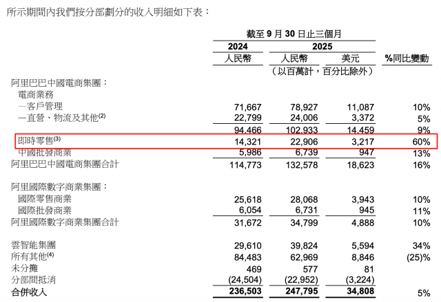 根據財報,這一增長主要得益于阿里2025年4月底推出的“淘寶閃購”帶來的訂單量爆發。