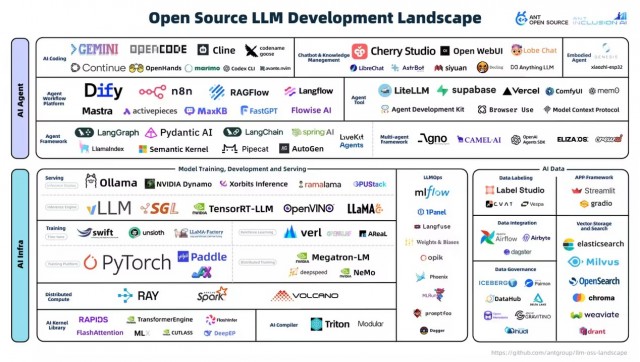 本次發(fā)布的大模型開源開發(fā)生態(tài)全景圖共收錄了分布在 22 個技術(shù)領(lǐng)域的 114 個最受關(guān)注的開源項目,螞蟻開源聯(lián)合Inclusion AI 發(fā)布了全新的《全球大模型開源開發(fā)生態(tài)全景與趨勢告》,再看大模型開源開發(fā)生態(tài)全景與趨勢》。