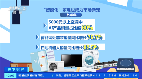 平臺數據顯示,今年上半年,縣域家電市場加速提檔升級,“大尺寸、大容量”家電成為深受消費者歡迎的品類,“智能化”家電也成為市場新寵。上半年,5000元以上空調中,AI產品銷量占比超過60%,智能煙灶套裝、掃地機器人銷量同比分別增長76.7%、92.5%。