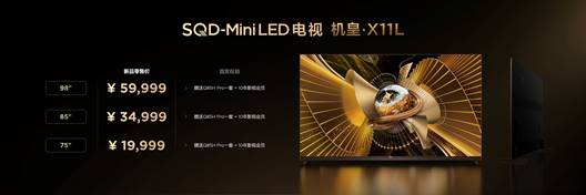 技術顛覆性升級,價格依然給力,TCL X11L 98/85/75吋零售價分別為59999元、34999元、19999元,TCL的頂尖科技,讓所有用戶都能觸手可及。