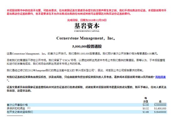 2018年6月5日,基巖資本向美國證券交易委員會(SEC)遞交IPO招股書,擬募資7000萬美元,沖刺中國私募基金在美上市第一股。