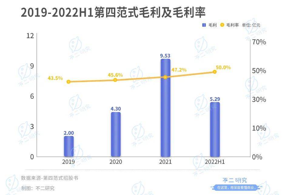2019年-2022上半年,其營收分別為4.60億、9.42億、20.18億、10.58億;同期的毛利分別為2.00億、4.30億、9.53億、5.29億。