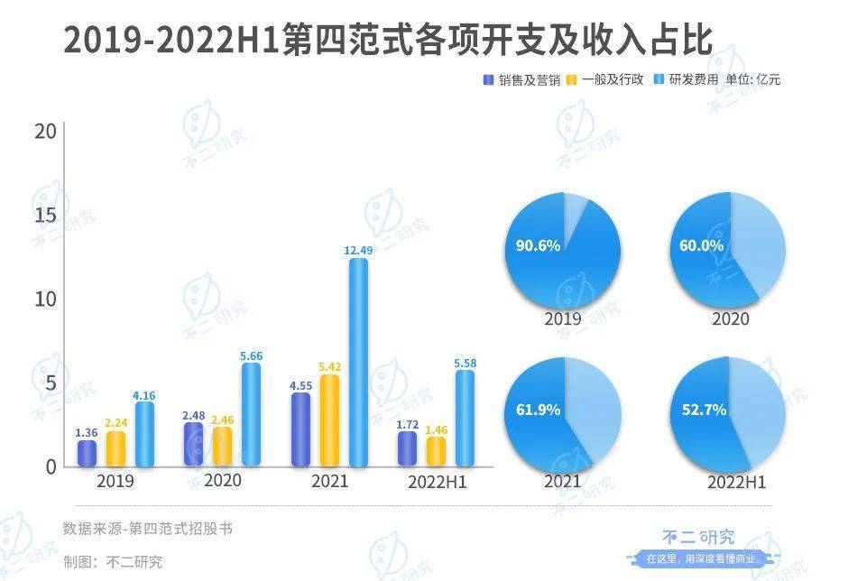 在2019年、2020年、2021年及2022上半年,銷售及營銷開支分別為1.36億、2.48億、4.55億、1.72億;一般及行政開支分別為2.24億、2.46億、5.42億、1.46億。