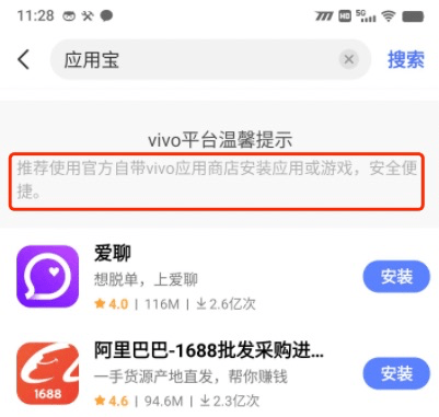 首先是允許應用寶安裝軟件提醒,接下來是提醒你該應用未經 vivo 官方檢測,你點繼續安裝才能進行下一步,最后安裝完成,還會提醒你下次記得去 vivo 自帶的應用商店下載這個 APP。