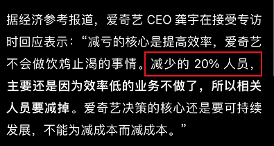愛奇藝在裁員的同時(shí)還明確表示要砍掉中小項(xiàng)目,把更多的錢放在頭部項(xiàng)目上。