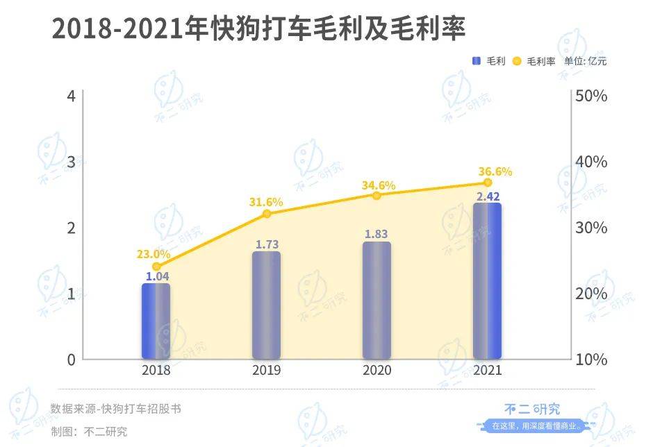 憑借提高抽傭率,快狗打車毛利率由2018年的23.0%提升至2021年的36.6%。