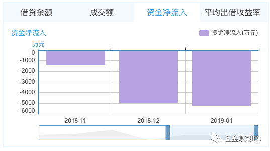 不僅如此,從2018年11月迄今,也即泰然金融提交IPO招股書之后,泰然金融的資金凈流出明顯加劇。2018年11月、12月及2019年1月,3個月間,泰然金融資金凈流入金額分別為-1400萬元、-4946萬元和-5268萬元。