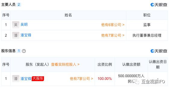 吳明和泰然金融創(chuàng)始人潘寶鋒之間有關聯(lián)。來源:天眼查