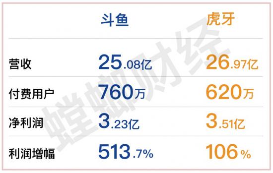 而在利潤方面,虎牙凈利潤雖高于斗魚,但斗魚的利潤增幅表現卻強于虎牙:虎牙凈利潤為人民幣3.51億元,同比增長106%;斗魚實現凈利潤3.23億元,同比增長513.7%。