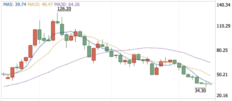 面對下行的業績,二級市場也在用實際行動進行投票,截至11月2日收盤,海天味業股價為36.86元/股,年內累計跌幅超44%,較2021年年初的126.2元/股跌超70%。