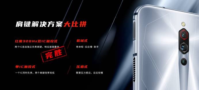不僅如此,在操控方面紅魔5S此次也有著更上一層樓的表現。除了全系標配240Hz屏幕報點率,確保144Hz高幀率模式下的觸控跟手度之外,紅魔5S還首次使用了觸控報點率高達320Hz的雙IC觸控肩鍵設計。