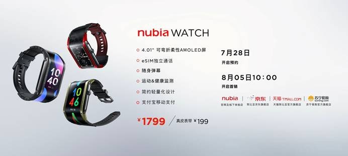 努比亞Watch將于8月5日0點開啟首銷,首發售價為1799元,Napa真皮表帶售價僅為199元,努比亞官網、京東努比亞官方旗艦店、天貓旗艦店、蘇寧易購等平臺均可在線購買,感興趣的朋友不要錯過!