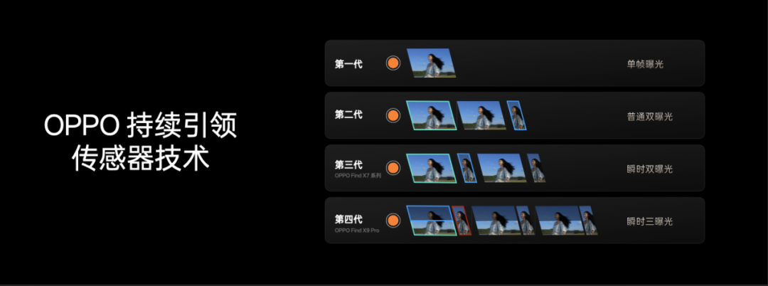 傳感器技術革新方面,Find X9 Pro 搭載的超動態大底主攝,其曝光技術升級至第四代,首次支持全新的“瞬時三曝技術”,第一次讓“實時的高動態”和抓拍完美融合。幫助用戶在旅拍途中抓拍沿途美好或氛圍感場景時,畫面也不會出現明暗割裂,建筑細節與人物動態都能清晰呈現。
