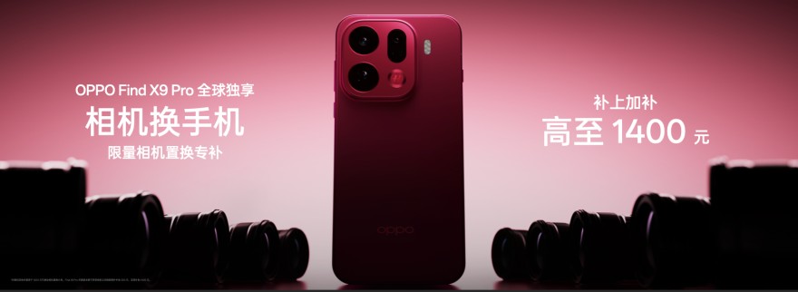 同時,OPPO 還推出“相機置換專補”計劃,用戶可以參與活動將自己手里的相機置換為 Find X9 Pro ,可享受官方至高 1400 元補貼。