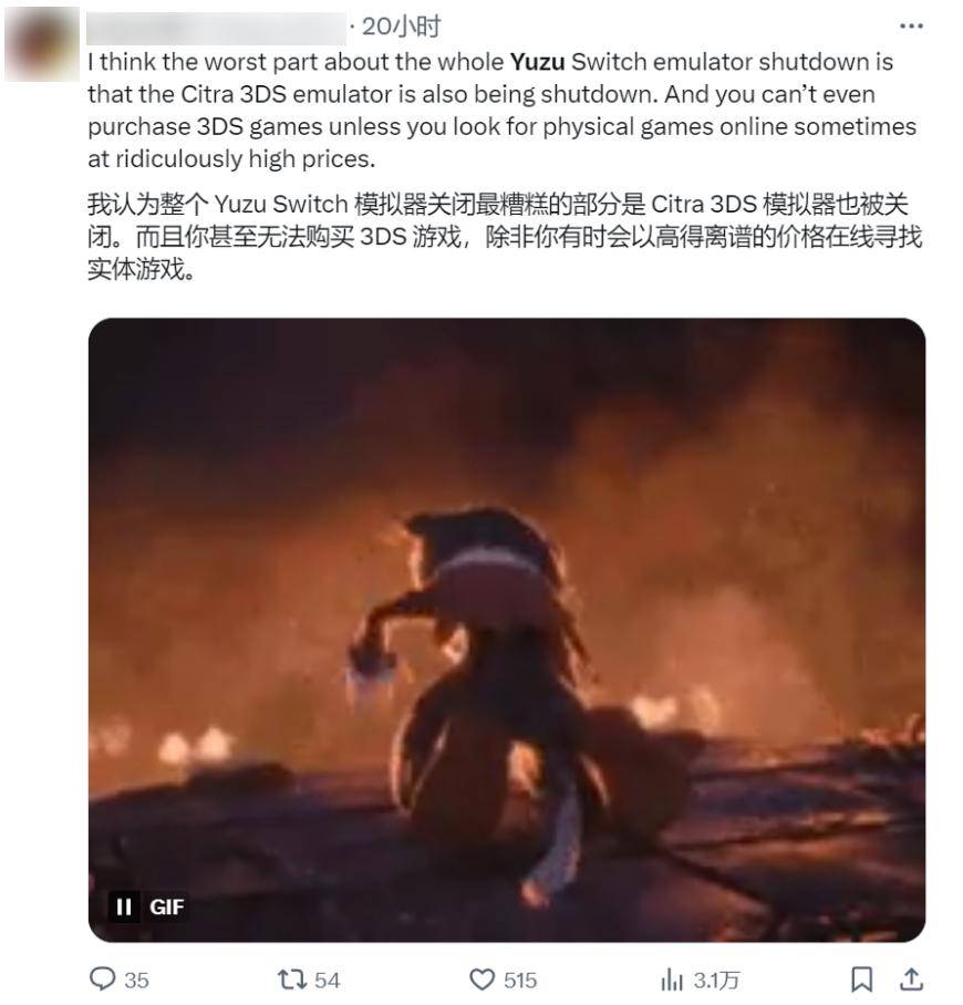 還有人緬懷和 switch 模擬器一起陪葬,同為 YUZU 開發的 3DS 模擬器 critra。