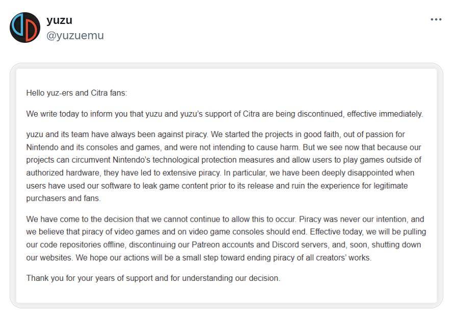 YUZU 這個團隊,也是早在 2019 年就開始了任天堂 3DS 的模擬器開發,民間聲望挺高,任天堂也不可能一直聞所未聞。