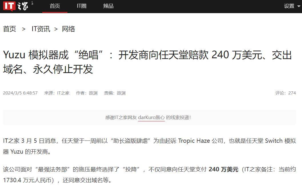 但就事論事,其實 YUZU 開發模擬器本身并沒什么問題。