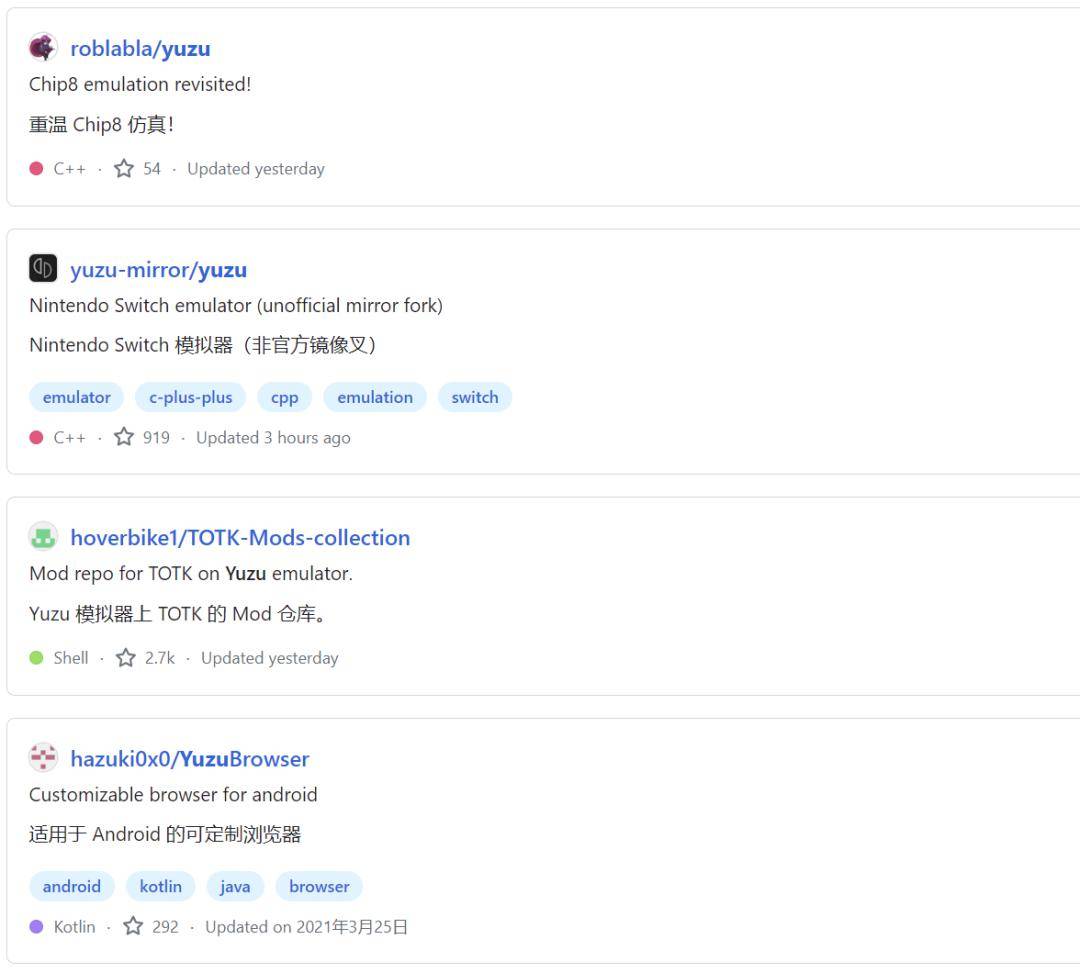 除此以外,現在還有大量網友在 GithHub 重新上傳了 YUZU 的備份源碼。