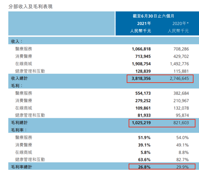 2021年上半年,平安好醫(yī)生旗下在線商城創(chuàng)收19.09億元,占總收入的半壁江山,然而其毛利率僅為5.8%,不但較其他業(yè)務低了數(shù)倍,甚至不及上年同期的8.8%。真正令平安好醫(yī)生獲利的其實是醫(yī)療服務、消費醫(yī)療等高凈值業(yè)務,這與圓心科技的戰(zhàn)略構(gòu)想如出一轍。