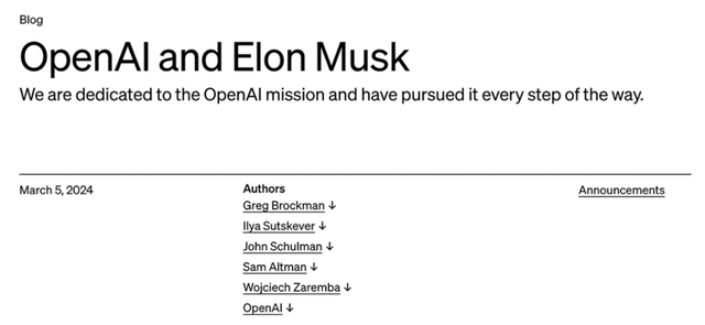 “他(馬斯克)曾激勵我們追求更高的目標,但隨后卻告訴我們注定失敗,并創辦了一家競爭對手。當我們在沒有他的參與下,開始朝著OpenAI的使命取得有意義的進展時,他卻選擇起訴了我們。”