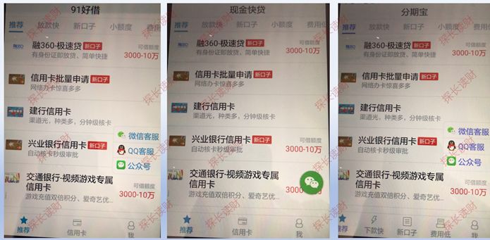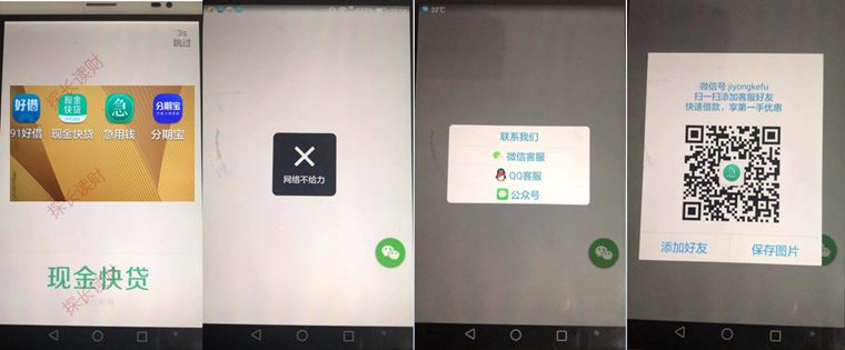 三個現金貸APP的首頁頁面完全一致,右側的微信客服二維碼也一樣。