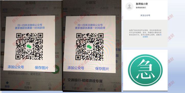 “分期寶”和“急用錢”官方微信二維碼顯示都是“急用錢小貸”