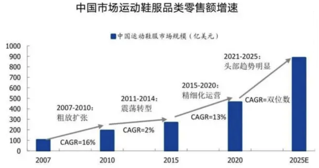 當然,僅僅依靠營銷來打開市場只是一方面誘因,彼時國內運動時尚消費市場欣欣向榮,增量空間敞口不斷向上的外在因素,也同樣是成就貴人鳥輝煌的“阻推器”。