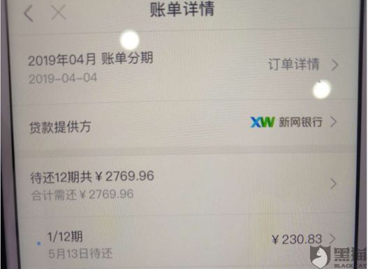 4月3日,網友在“黑貓投訴”發帖投訴稱,其在分期樂申請2300元帳單分期,提示每期還款230、83元,總計還款2769.96元,其在帖子中表示,根據綜合費率不超過36%的規定,分期樂已嚴重違規。
