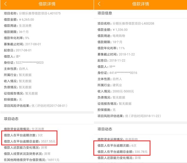 近日,商評君偶然發現,桔子理財“12月愛定存”匹配借款項目,個別借款人在平臺已發生多次逾期。雖然桔子理財披露借款人已逾期,但桔子理財還是采取一個出借人匹配多個借款人的形式,實現分散匹配小額消費借款項目。