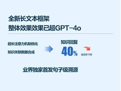 大模型的長文本能力一直是用戶關注的重點,特別是在企業(yè)知識問答這類嚴謹?shù)膽脠鼍爸校脩魧Υ竽P突糜X的容忍度幾乎為零。因此,訊飛星火推出了基于智能體的全新長文本框架,并行業(yè)首發(fā)了句子級溯源功能。這一新框架優(yōu)化了超長注意力機制,同時利用大規(guī)模網頁和書籍數(shù)據(jù)進行知識關聯(lián)式合成,使得知識回復的錯誤率降低了40%,句子級溯源效果更是超越了GPT-4o,顯著緩解了問答搜索服務中因大模型幻覺而需要反復溯源確認的應用落地難題。