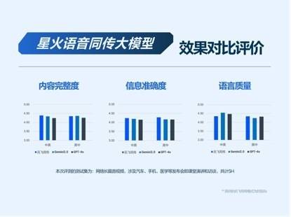 技術測試結果顯示,即便將訊飛的語音同傳技術和國外最優(yōu)競品的交傳技術對比,訊飛語音同傳在內容完整度、信息準確度以及語言質量上都處于領先水平,同時星火語音同傳大模型還可以最快實現(xiàn)僅5秒的同傳時延,達到人類專家譯員的水平。